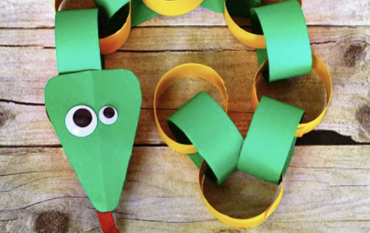 Para hacer este animal, que en ocasiones puede dar escalofríos… Hay que cortar tiras de papel de 3×15 cm aproximadamente, e ir grapándolas mientras las encadenamos. Solo necesitas papel de colores, unas tijeras y grapadora.